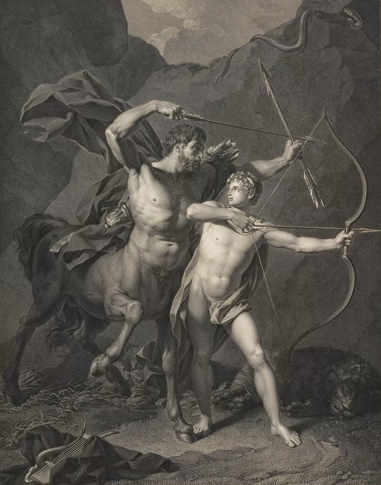 Chiron is the name of a centaur from Greek myth, a half-man, half-horse being. Most centaurs are wild, lustful, uncivilized, and untamed, living in nature and only occasionally making an appearance. But Chiron is different: he was a wise, skilled, and well-mannered centaur. Most centaurs had a human father, but Chiron’s origin was divine. He was conceived by the union of the Titan Kronos with the nymph Philyra. As a result, his role models and teachers were divine, and he himself became a teacher to the gods.